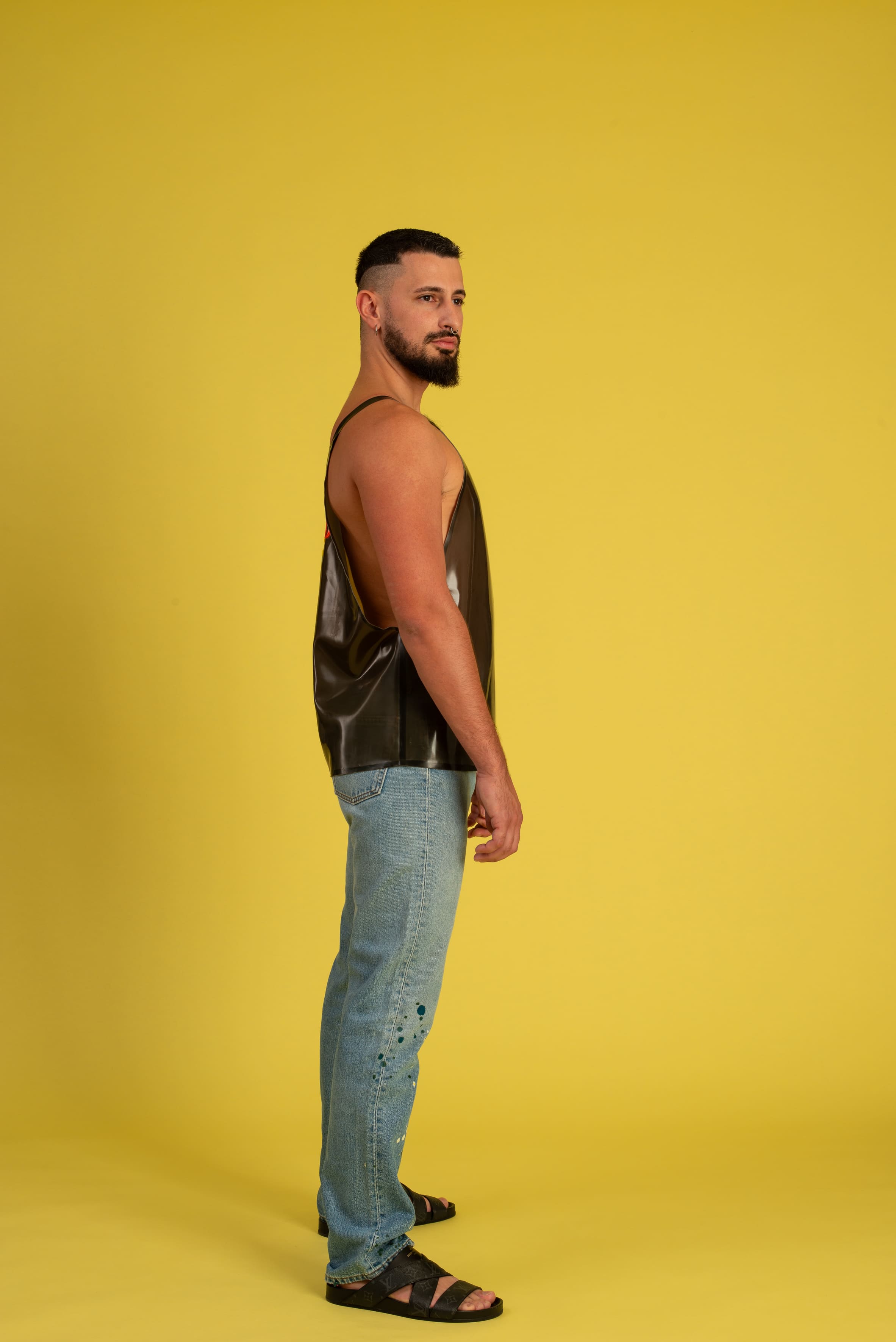 Für alle, die Latex lieben und ein Statement setzen wollen: Das Rubber Tanktop ist sehr legere geschnitten und betont keine Silhouette.